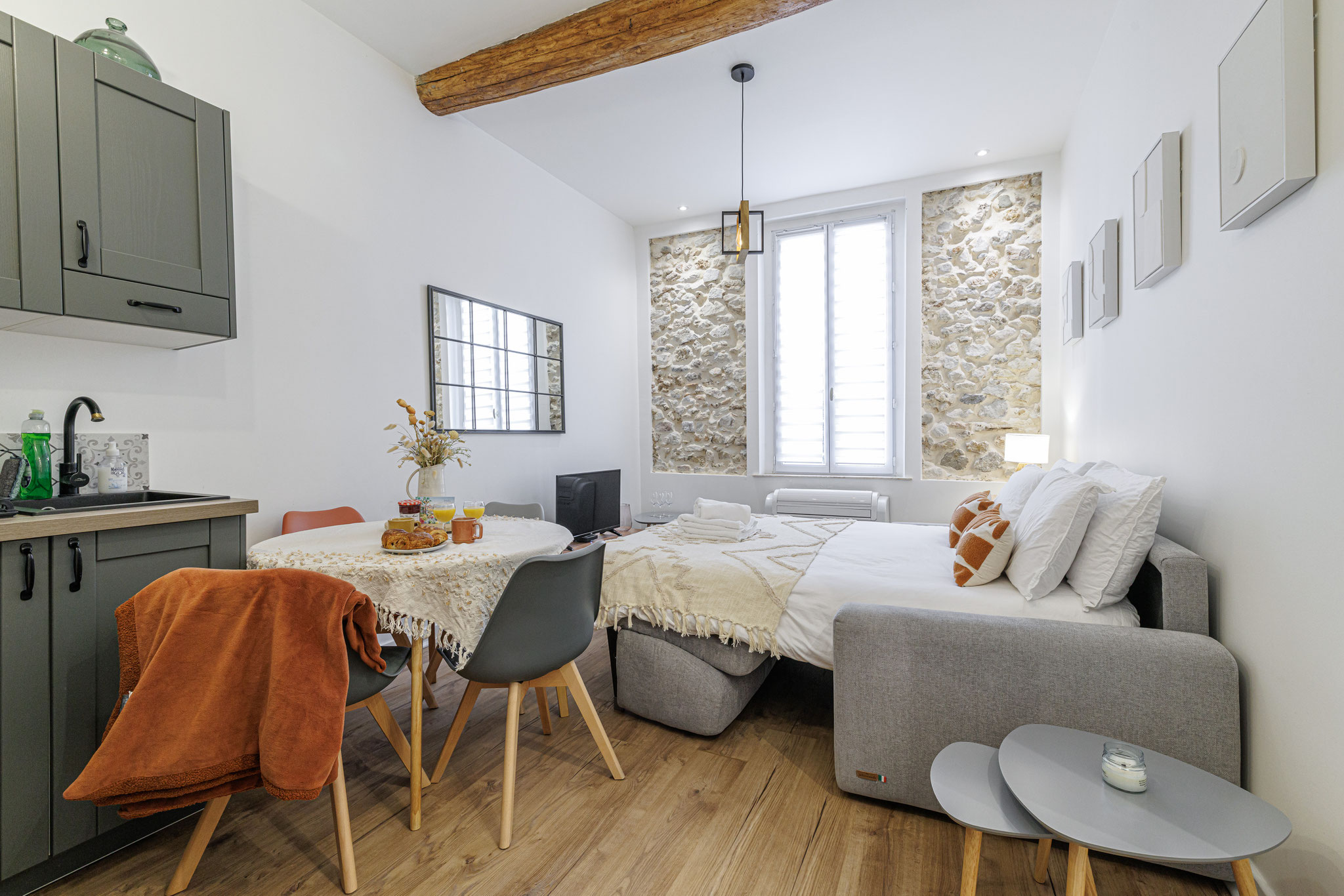 Located on the first floor of a traditional building, this apartment blends Provençal charm with modern comfort. Nestled in a quiet street just steps from the beach and lively alleyways, it welcomes up to 4 guests with a cozy queen-size bedroom and a convertible sofa. The fully equipped kitchen invites you to enjoy fresh market produce. Experience the authenticity and charm of the old town while staying close to modern conveniences.